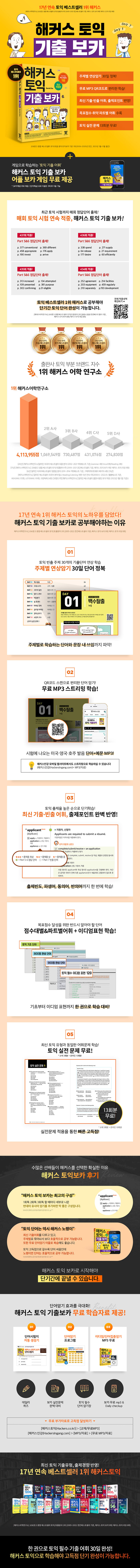 토익 기초 단어부터 고난도 어휘까지 모든 난이도의 단어를 수록했다. 토익 빈출 주제 30개에 맞춰 단어를 수록하여 주제별로 묶어서 쉽게 암기가 가능하다. 단어 MP3를 바로 들을 수 있는 QR코드를 각 Day 시작 페이지에 삽입하여 편리하게 학습이 가능하다.