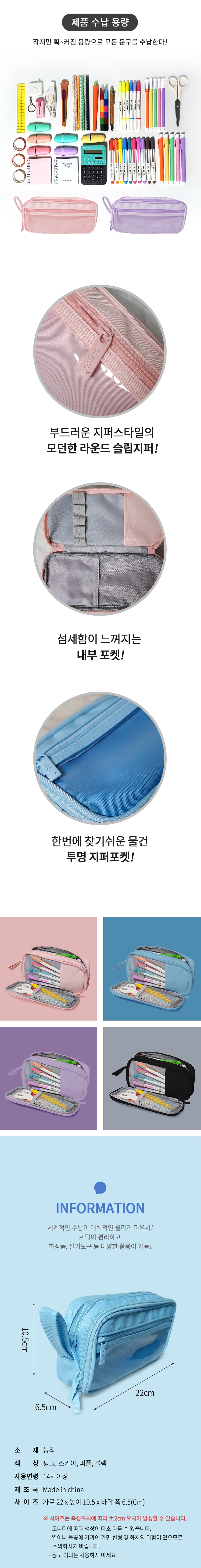 클리어 지퍼포켓의 문구,화장품 여행 파우치, 다용도 수납, 모던 4칼라