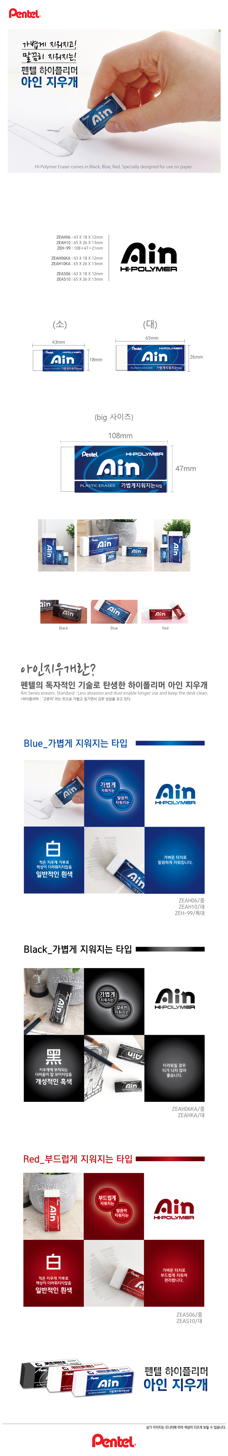 3000 펜텔 하이폴리머 아인 지우개 블루 ZEH-99 (특대/1개입)