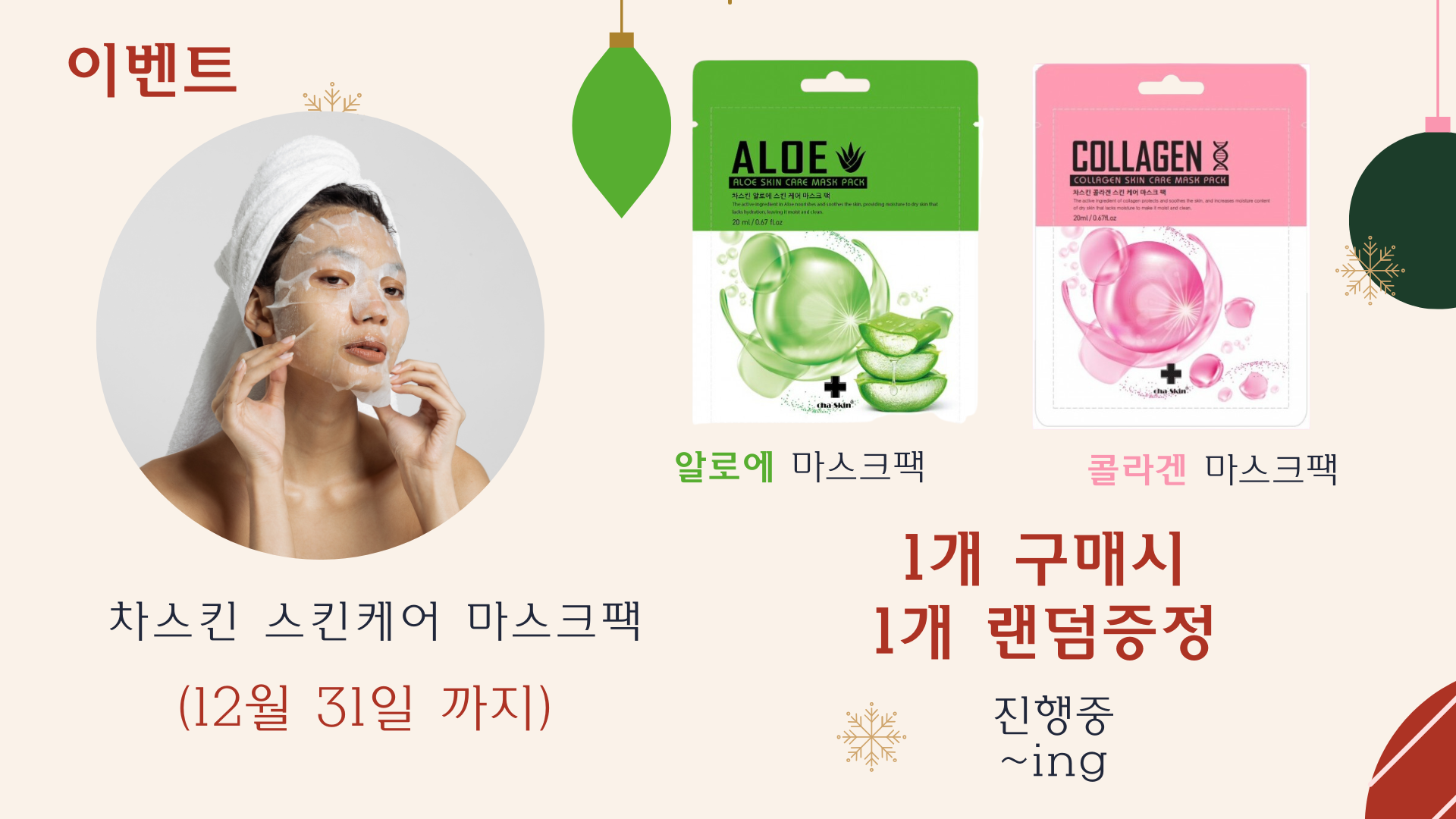 그외 12월 이벤트 사은품 차스킨 스킨케어 마스크팩 1개 증정