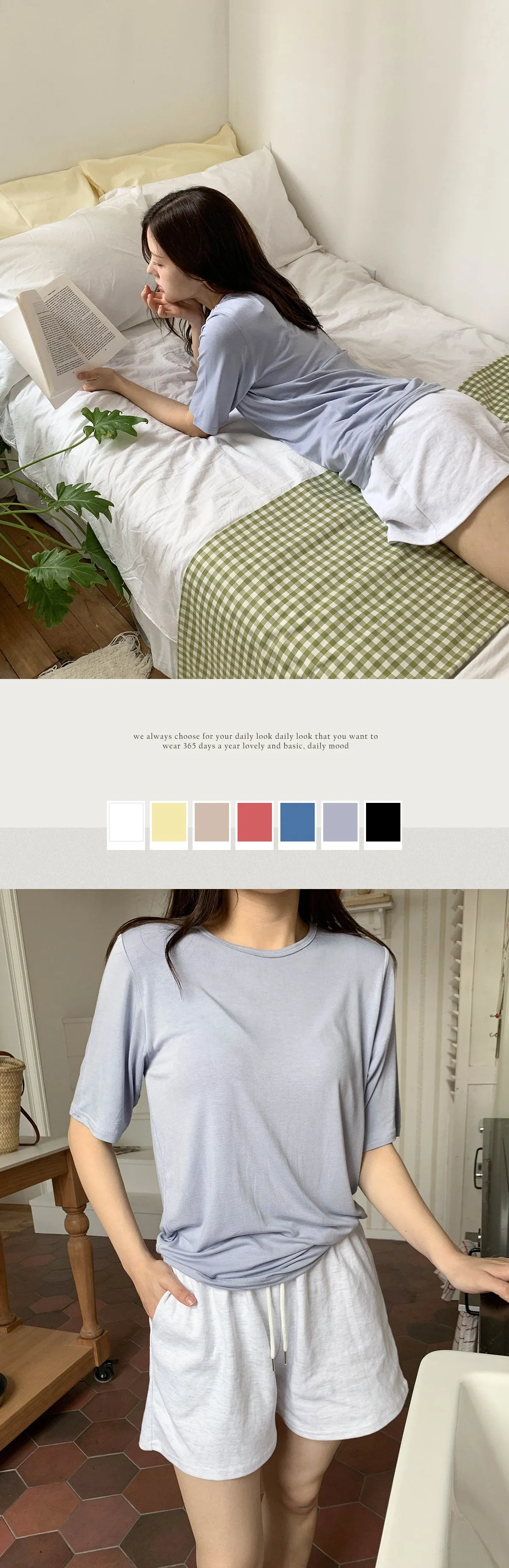 베이직한 디자인의 무지 반팔 티셔츠이며