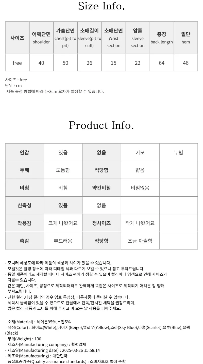 - FABRIC(소재) : 레이온95%,스판5%