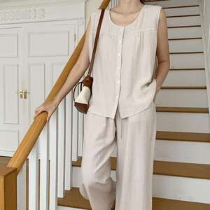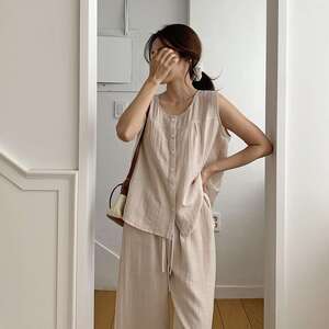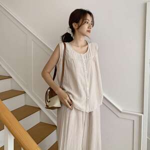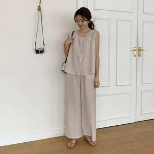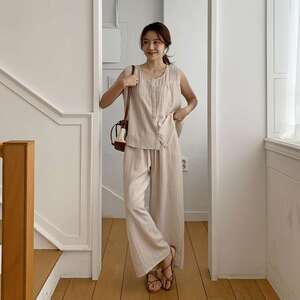 [ 브라오 절개 버튼 나시 와이드 팬츠 세트 ]