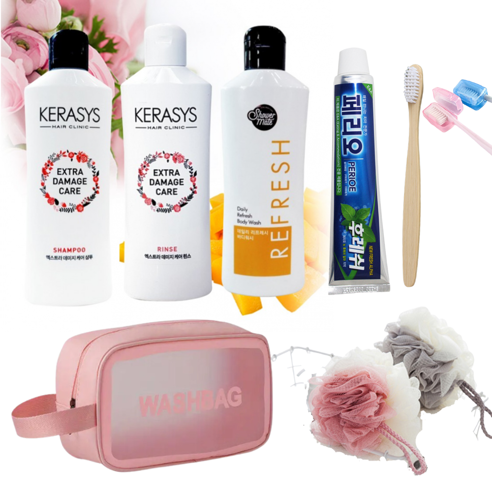 아이비 여행용 샴푸 린스 바디워시 세면도구 8종 세트 핑크